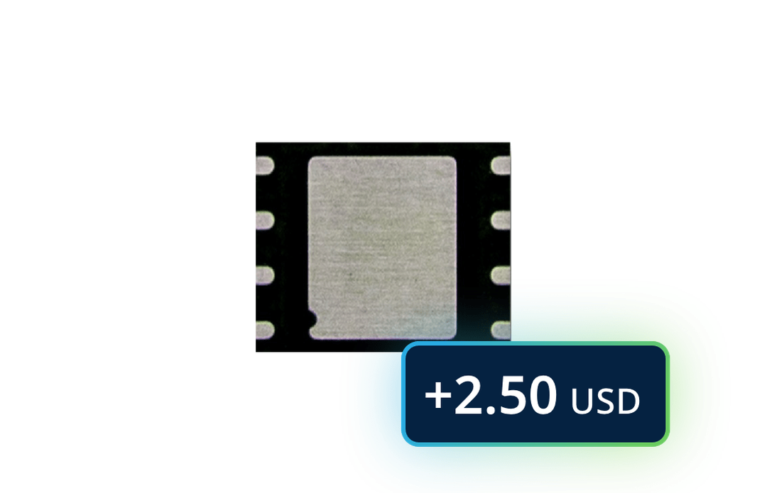 The IoT SIM Chip Industrial is designed for soldering to an IoT device and has strong ruggedization for maximum reliability. It supports the Freedom to Switch feature (eUICC) and can be used with the Lifetime Flat subscription for 2.50 USD.